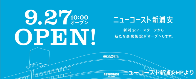 今後、3階は11月下旬オープンし、全館合わせて60店舗のテナントが稼働します。ますます便利になる『ニューコースト新浦安』に期待しましょう。