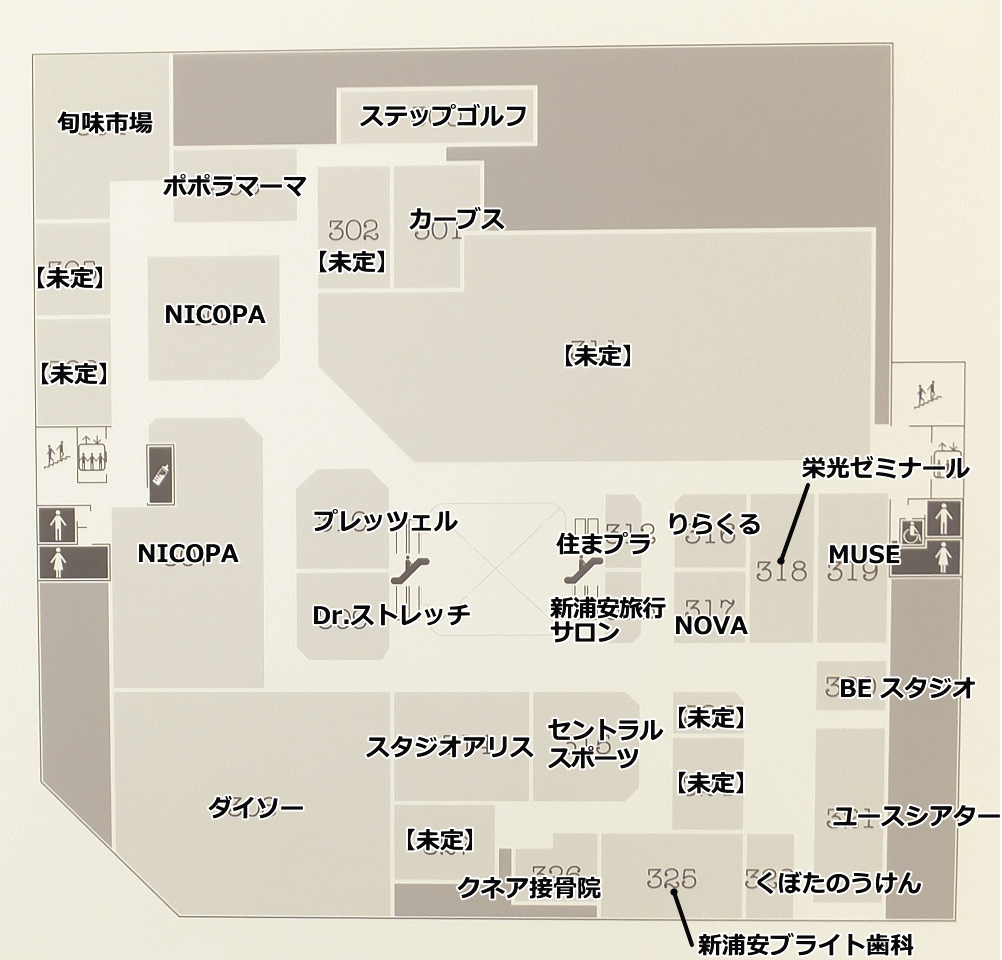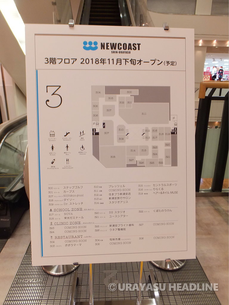 行ってきました②ではニューコースト新浦安の2階と、新たに判明した3階のテナントをレポートします。