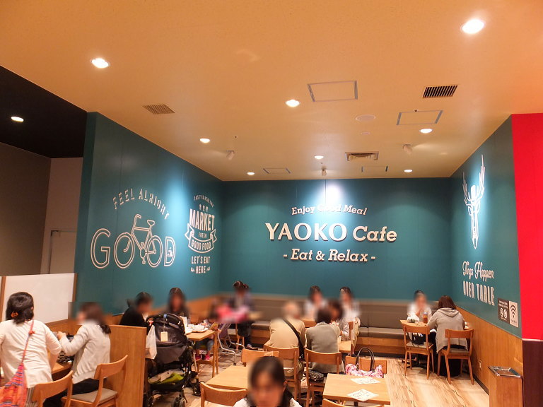 レジ横には、イート&リラックスコーナー『ヤオコーカフェ』もありました。買い物帰りには嬉しいですね。フリーWi-Fiも完備されています。