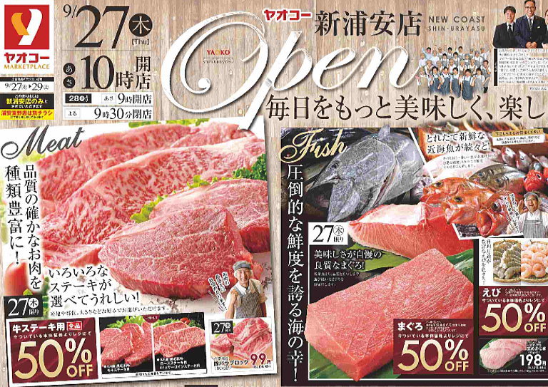 ニューコースト新浦安というか、ヤオコー新浦安店がオープンする前はこの行列です。ざっと200人以上でしょうか?やはりというか、そうだよねというか、このチラシを見れば並ぶ価値ありますよね。