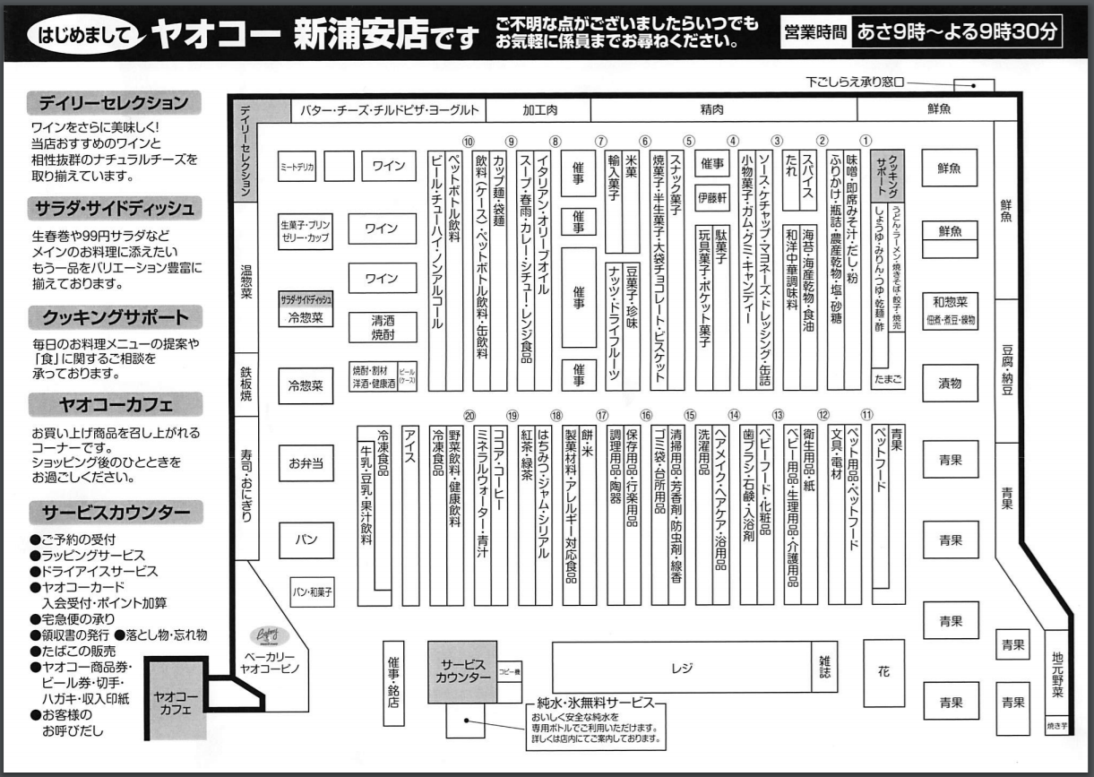 まずはヤオコー新浦安店のフロアマップ